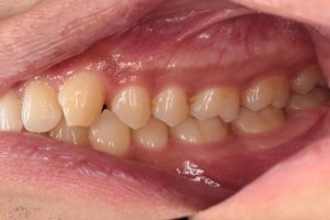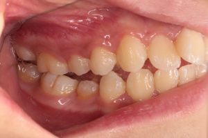左の写真は上下の歯がかみ合っていない状態、右の写真は上下の歯がかみ合っている状態