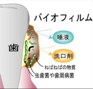 ばい菌が作ったヌメリ、バイオフィルムは歯ブラシでこすってもなかなか落ちません。